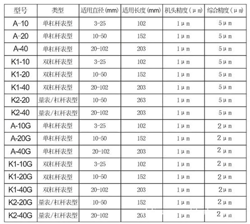 1、标准精度0.005mm和高精度0.002mm;