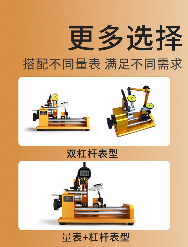 3.量表规格和其它配件(量表支架、标准杠杆表支架、侧面杠杆表支架、导轨末端支架等)。