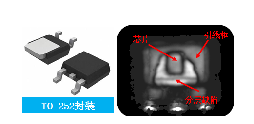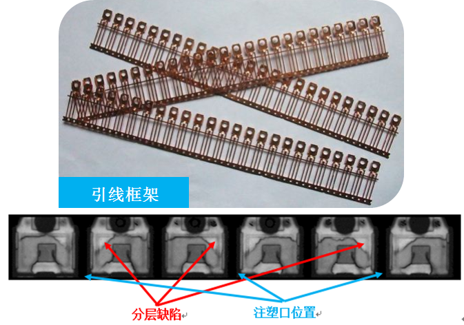 塑料封装与引线框架分层(脱粘)是封装制造过程中常见的缺陷类型。该缺陷的存在,造成塑封无法保护芯片工作,水汽容易侵入,严重影响器件的寿命和可靠性。只有使用超声检测方法,才能检查该缺陷是否存在。